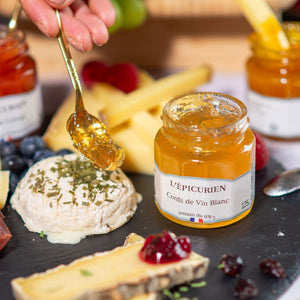 Élaboré à partir de 55 % de vin blanc du Pays d’Oc, ce confit révèle des notes fraîches, délicatement fruitées et subtilement acidulées. Sa texture lisse et brillante en fait un incontournable de la cuisine fine, aussi discret que sophistiqué.