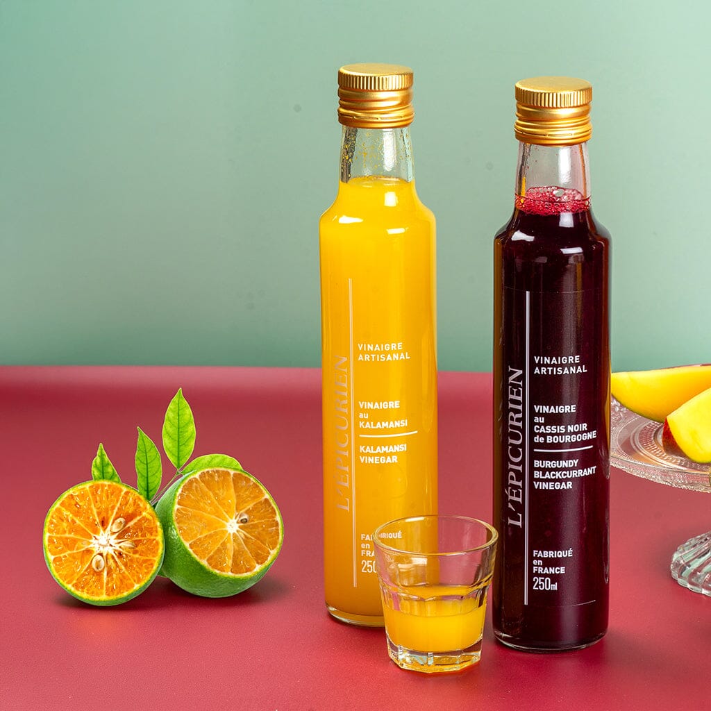 Découvrez notre Vinaigre de Kalamansi, le best-seller qui fait découvrir cet agrume exotique aux mille nuances. Le Kalamansi, petit agrume indonésien, offre une palette aromatique unique qui rappelle tour à tour le pamplemousse, la mandarine et le citron vert, avec des touches acidulées complexes qu'aucun autre agrume ne possède. Préparé avec 42% de pulpe de Kalamansi - le premier ingrédient avant le vinaigre.