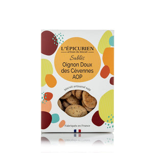 • Un mariage de saveurs unique. Ces sablés apéritifs allient l'expertise de L’Épicurien en biscuiterie avec l’incontournable oignon doux des Cévennes AOP, véritable star de la région. Ce mariage d’amour vous promet une explosion de saveurs à chaque bouchée.